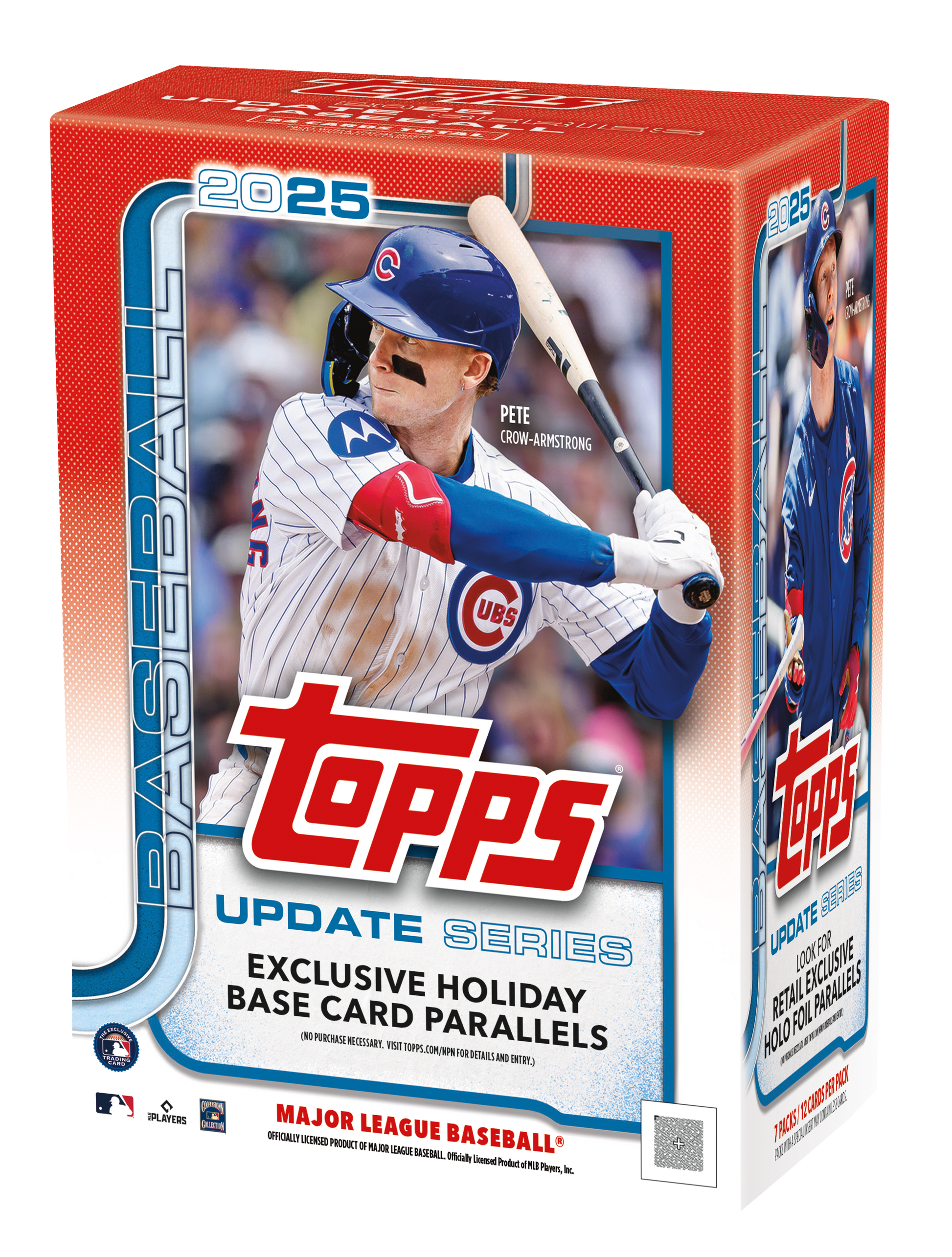 2025 Topps Baseball Update Series delivers a Hobby-favorite mix of MLB® rookies, stars, and legends, all showcased in the iconic 2025 Topps Flagship design. The 350-card base set includes Rookies, Rookie Debut, traded players and more, with a sprawling lineup of parallels spanning Hobby, Retail, and SKU exclusives. Collectors will find fan-favorite Gold, 1-of-1 Foilfractors, and all-new Value Box Holiday variations.