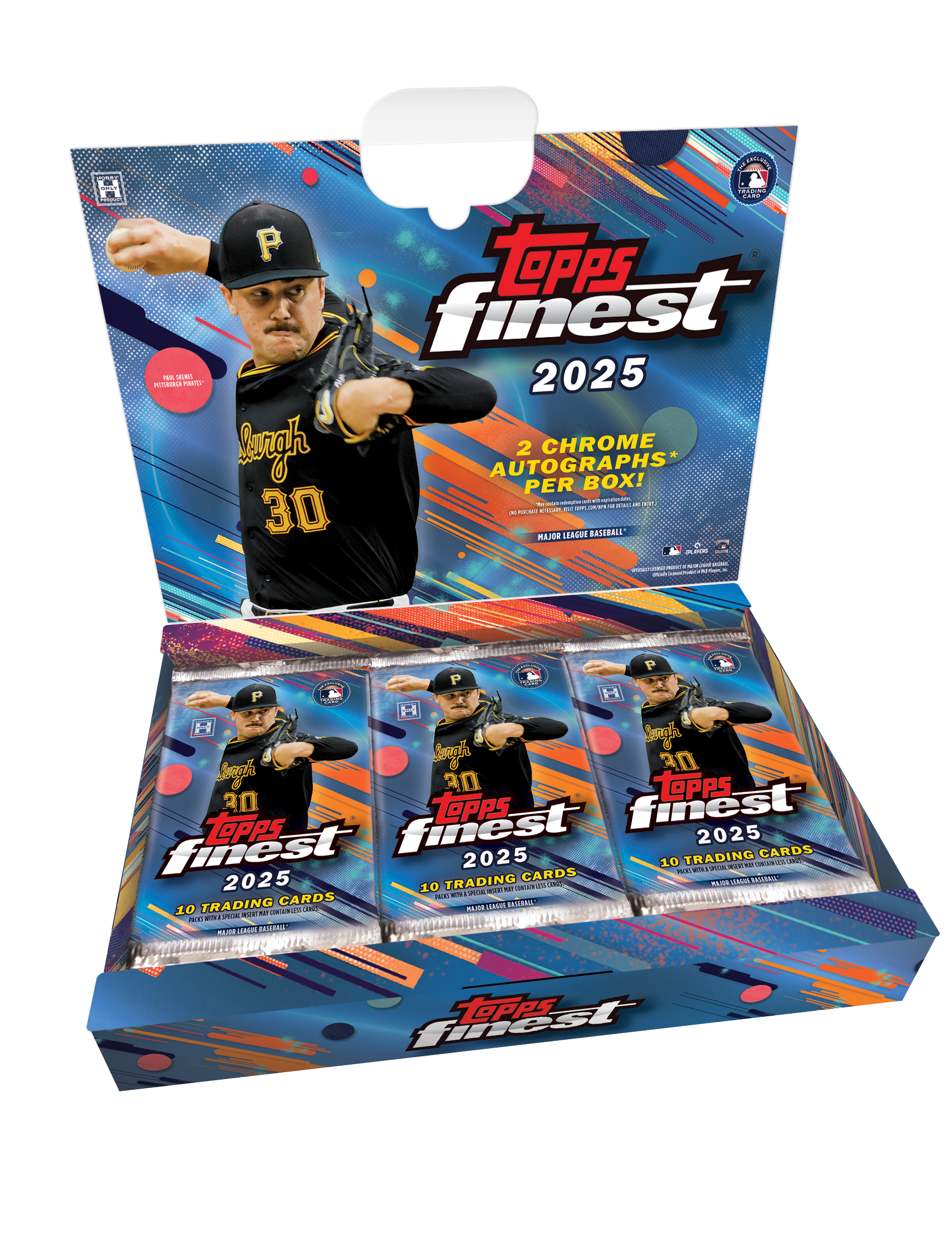 2025 Topps Finest Baseball returns with the thee tiered base set, in a new bright and colorful design.