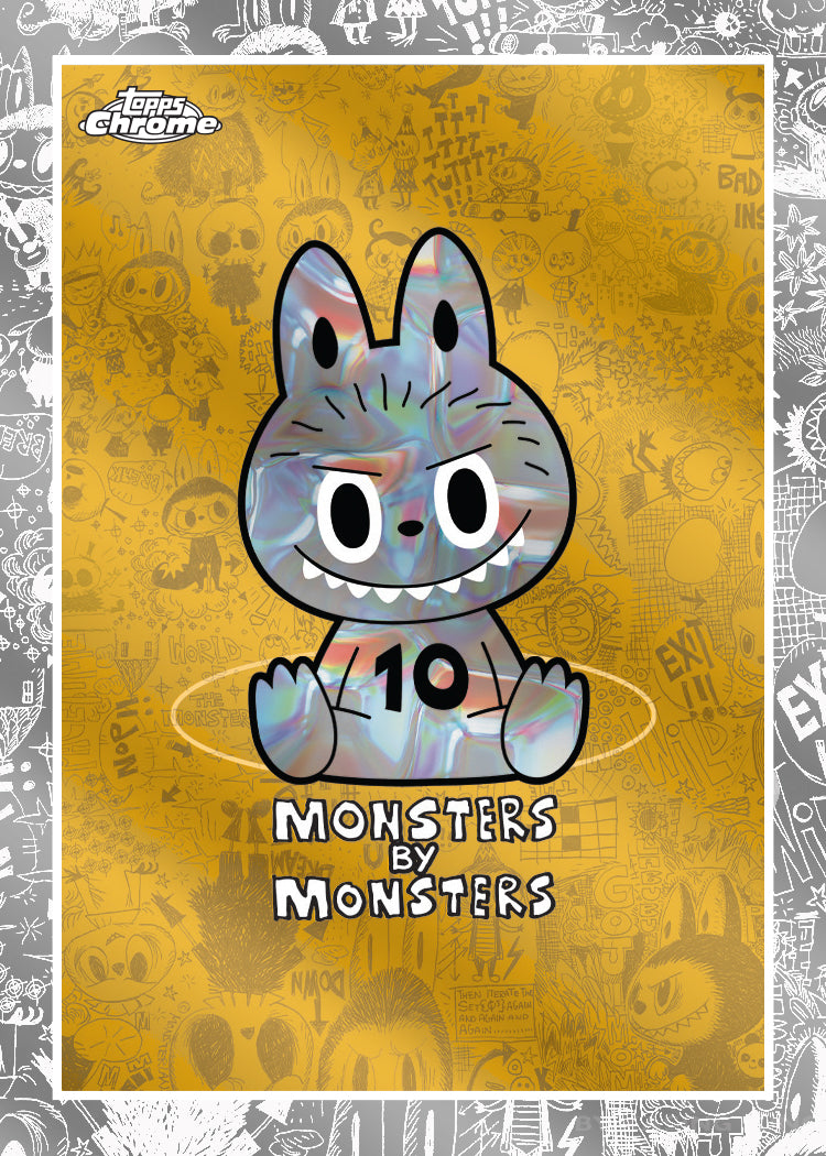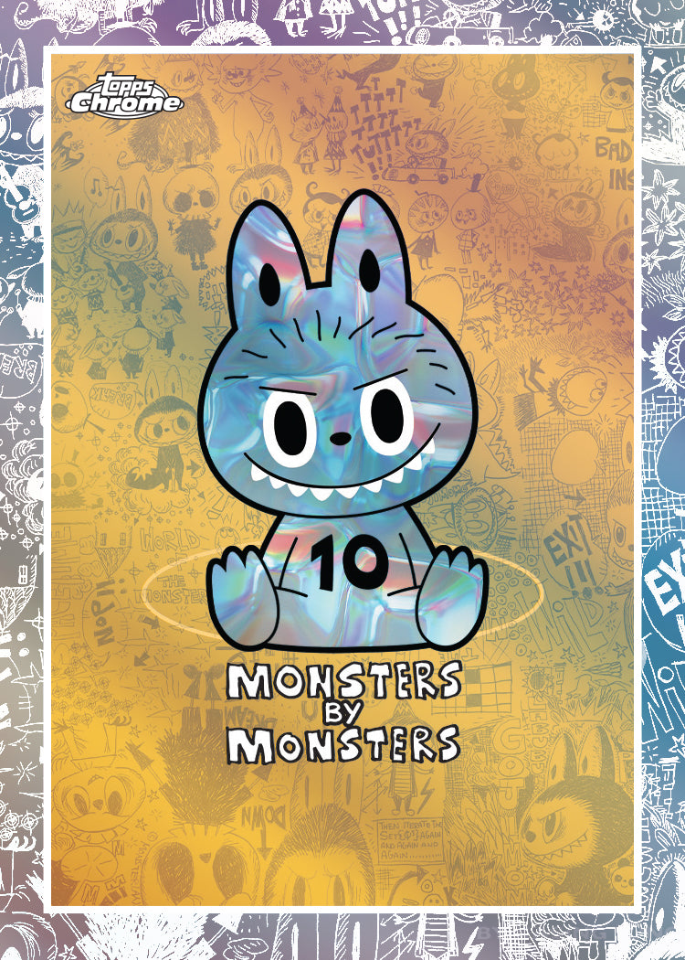 Topps has partnered with How2Work and Pop Mart for the first time ever to bring you the 2025 Topps Chrome® Labubu 10th Anniversary box! Each box includes four Chrome® base cards and one Chrome® parallel, plus a collectible keyring case to display your card just like your Labubu! Cards feature artwork from Labubu creator and artist Kasing Lung. Collectors can chase vibrant Chrome® parallels including Refractors, 10th Anniversary logo borders and 1-of-1 SuperFractors, along with ultra-rare Artist Autographs.