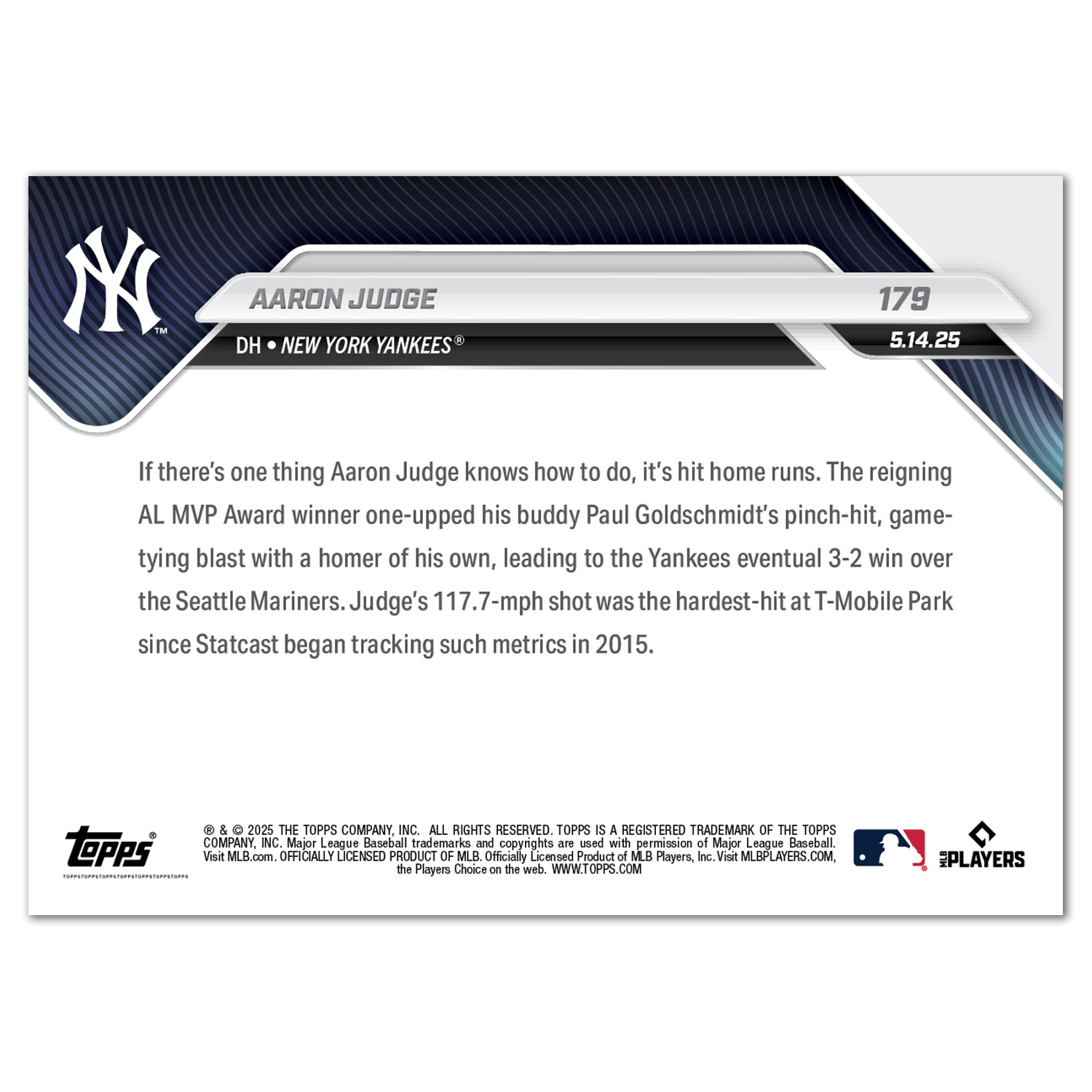 Aaron Judge - 2025 MLB Topps NOW® - Card 179 - PR: 2068