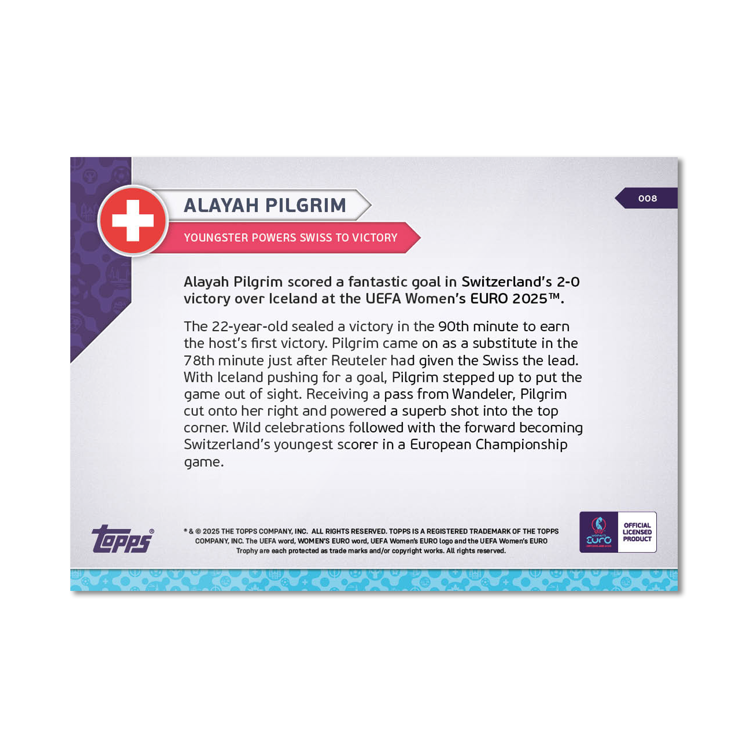 Alayah Pilgrim - UEFA Women’s EURO 2025™ Topps NOW® - Card 8 - PR: 204