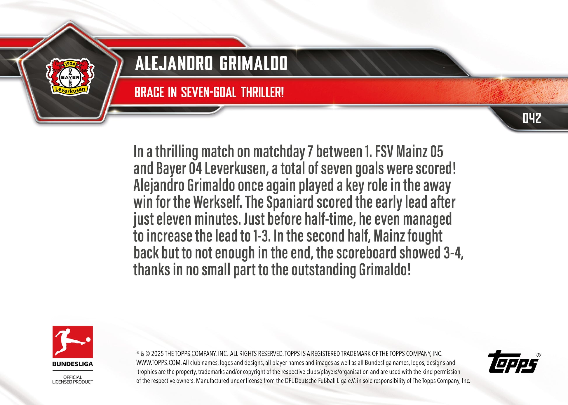Alejandro Grimaldo - 2025-26 Bundesliga Topps NOW® - Card 42 - PR: 115