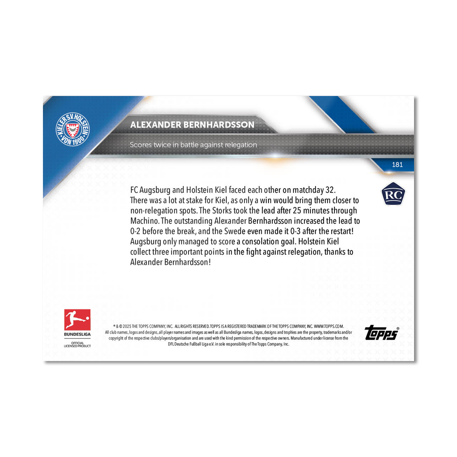 Alexander Bernhardsson - 2024-25 Bundesliga Topps NOW® - Card 181 - PR: 86
