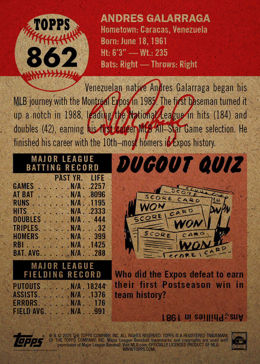 Andres Galarraga - 2025 MLB Living Set® - Card 862 - PR: 1239