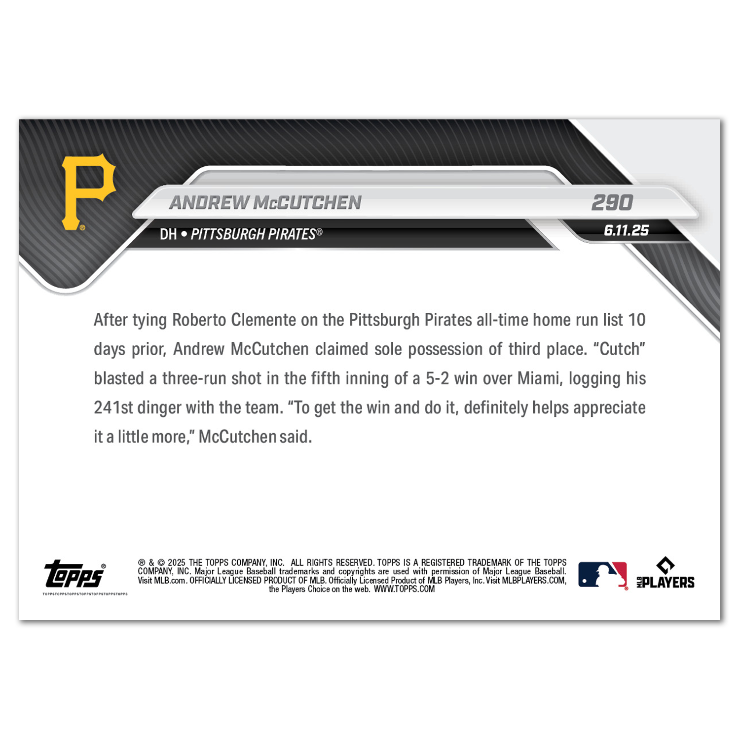 Andrew McCutchen - 2025 MLB Topps NOW® - Card 290 - PR: 946