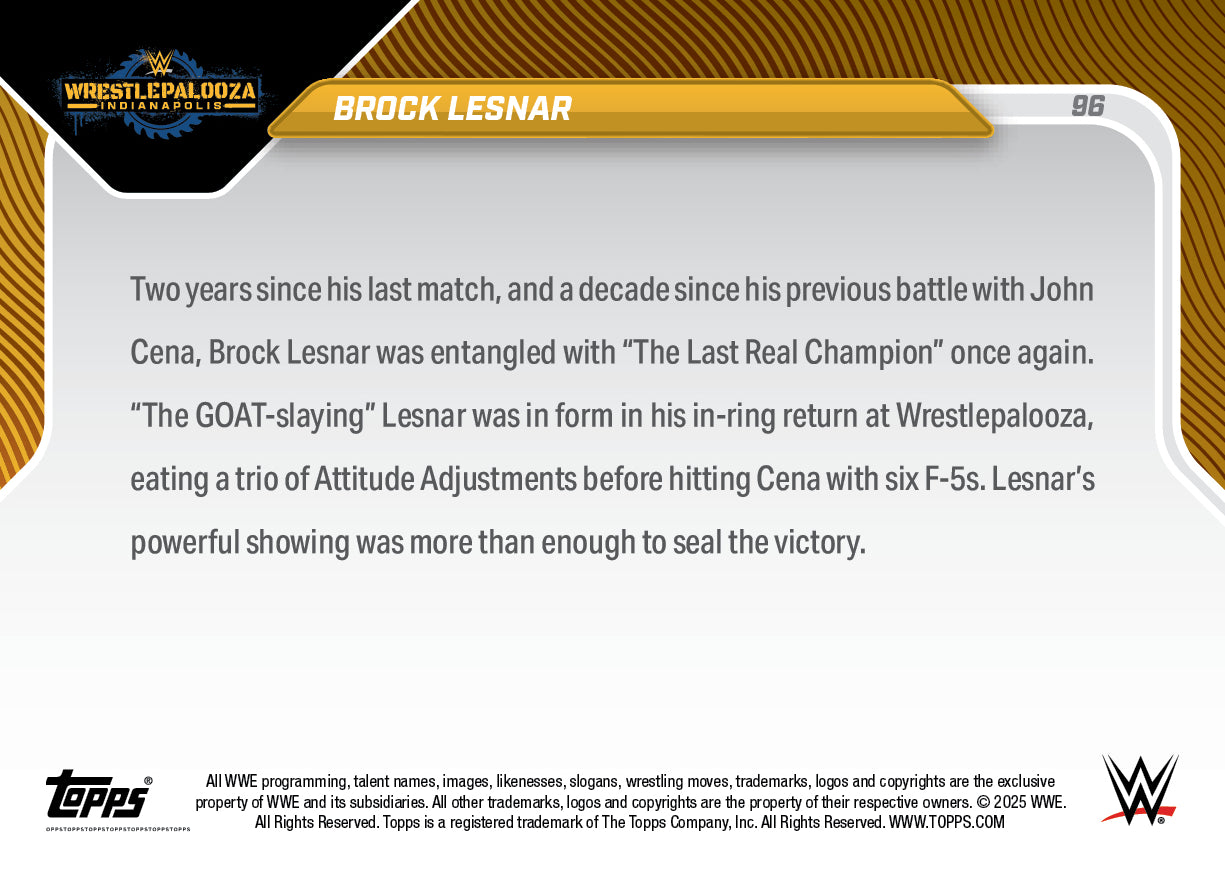 Brock Lesnar - 2025 WWE Topps NOW® - Card 96 - PR: 1290