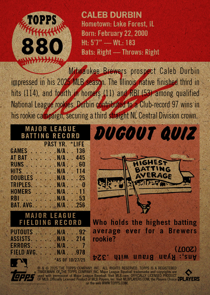Caleb Durbin - 2025 Topps Living Set® - Card 880