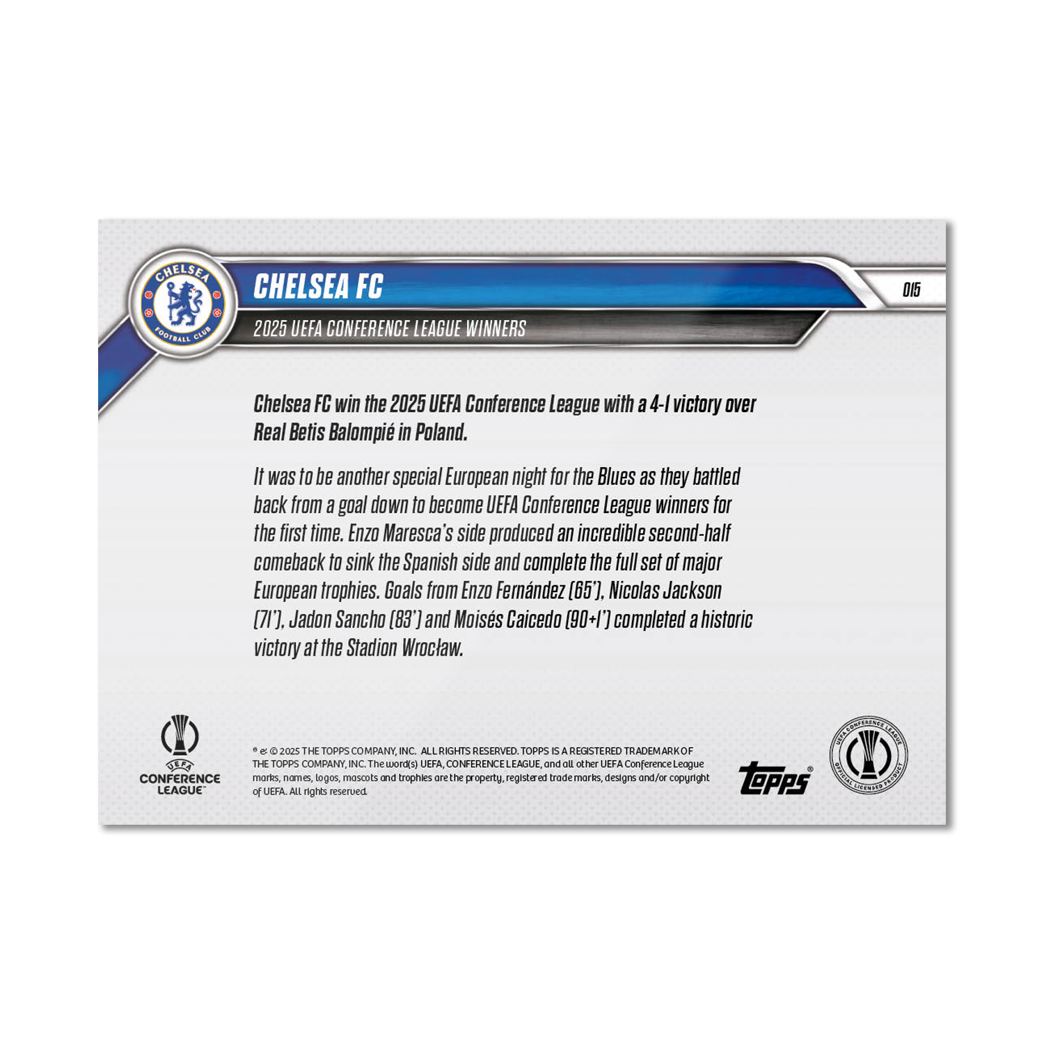 Chelsea FC - 2024-25 UECL Topps NOW® - Card 15 - PR: 1410
