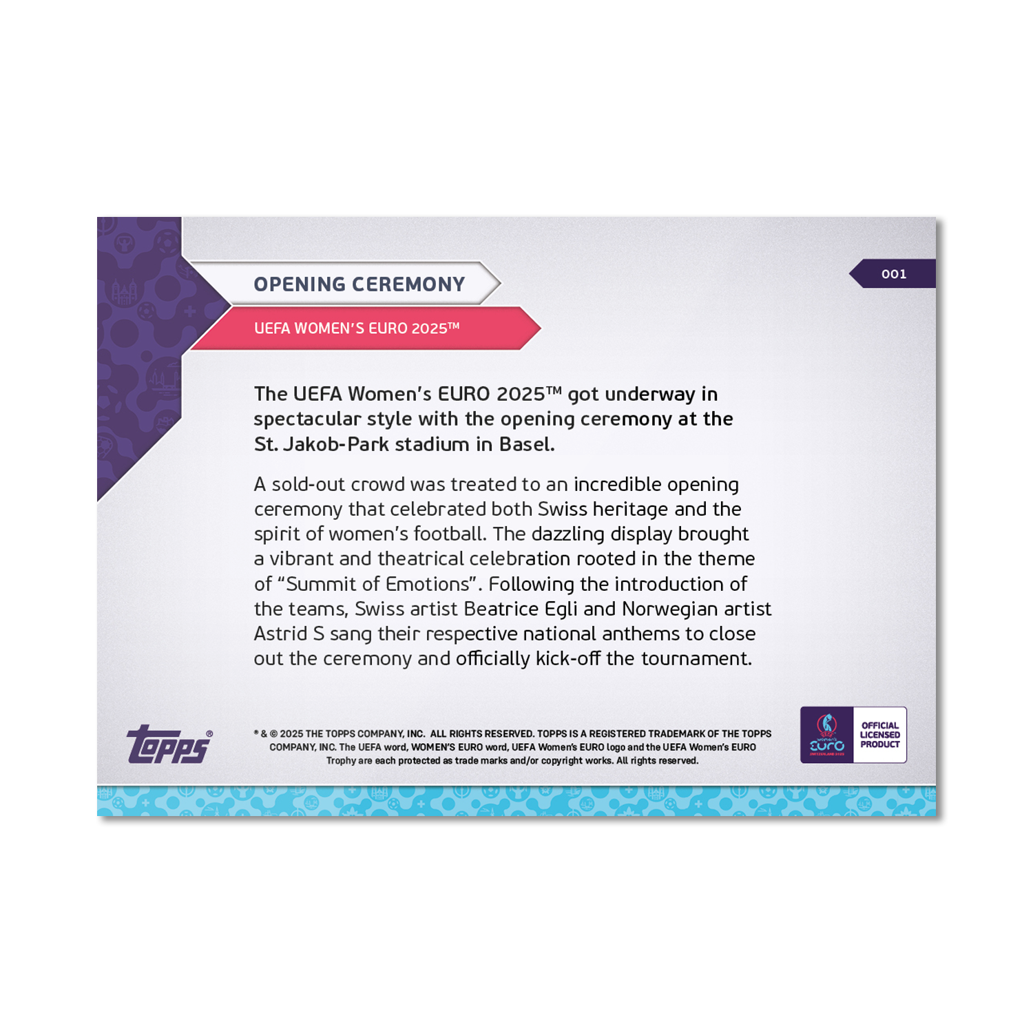 Opening Ceremony - UEFA Women’s EURO 2025™ Topps NOW® - Card 1 - PR: 85