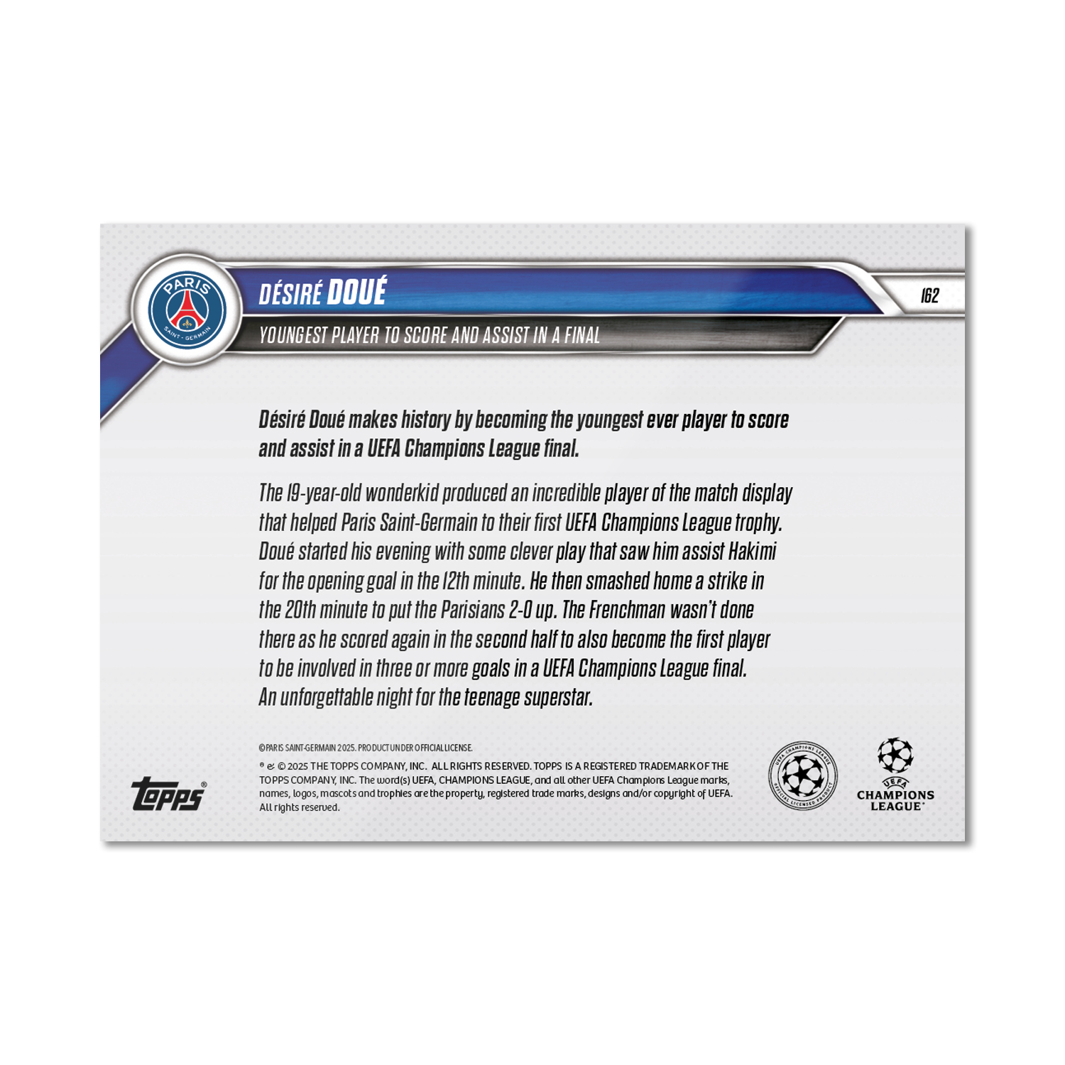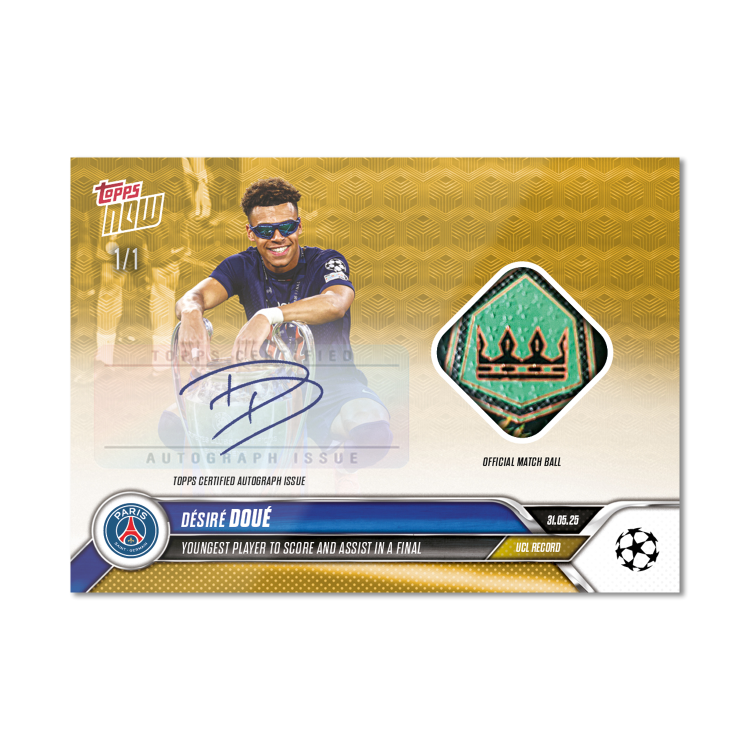 Désiré Doué - 2024-25 UCL Topps NOW® - Card 162 - LOOK FOR AUTO-RELIC - PR: 5843