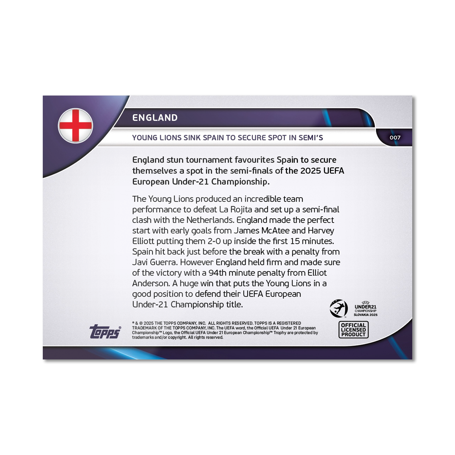 England - 2025 UEFA Euro U-21 Topps NOW® - Card 7 - PR: 94