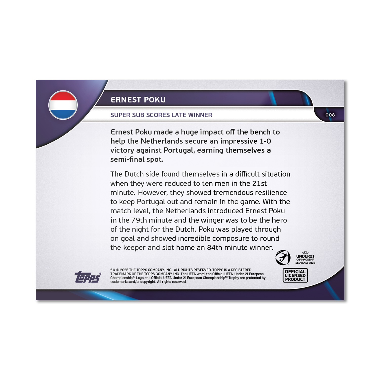 Ernest Poku - 2025 UEFA Euro U-21 Topps NOW® - Card 8 - PR: 86