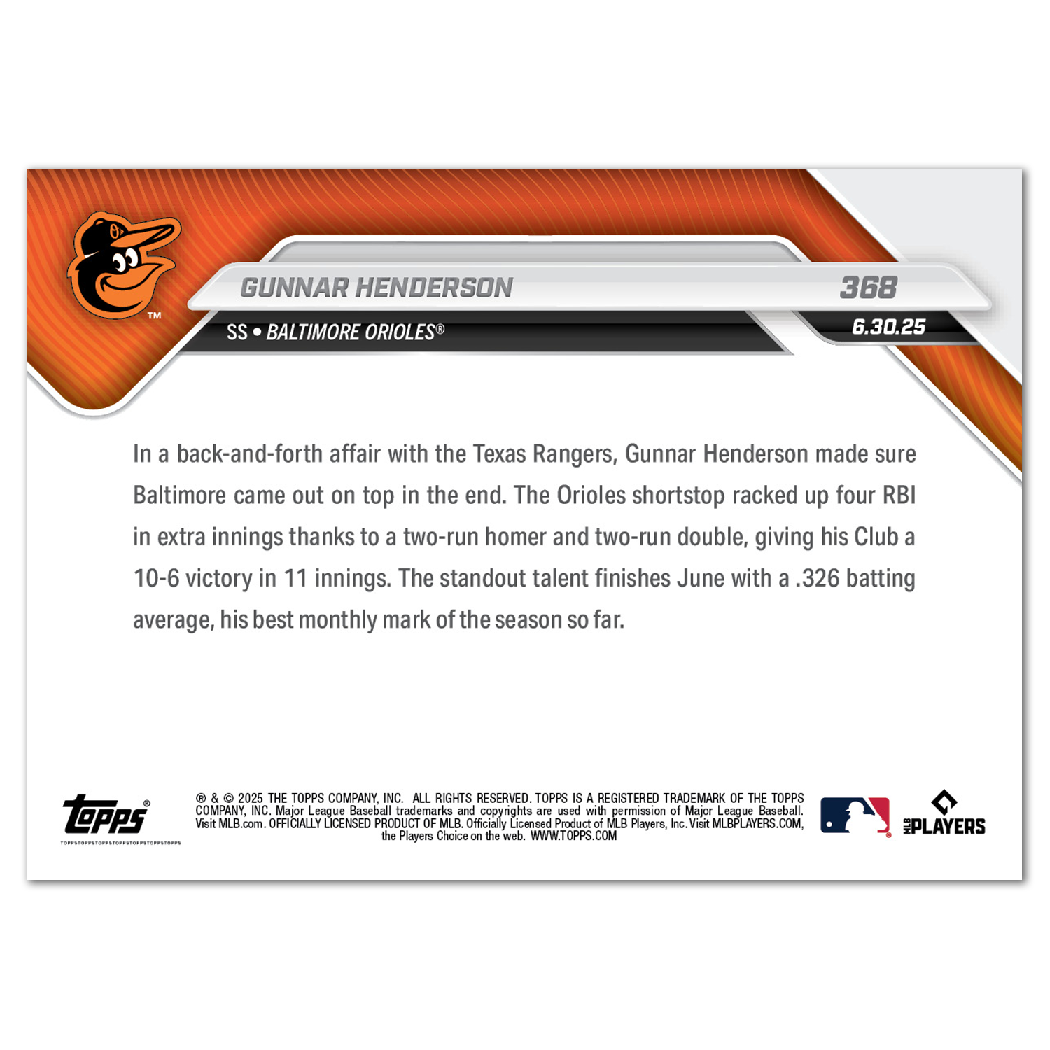 Gunnar Henderson - 2025 MLB Topps NOW® - Card 368 - PR: 670
