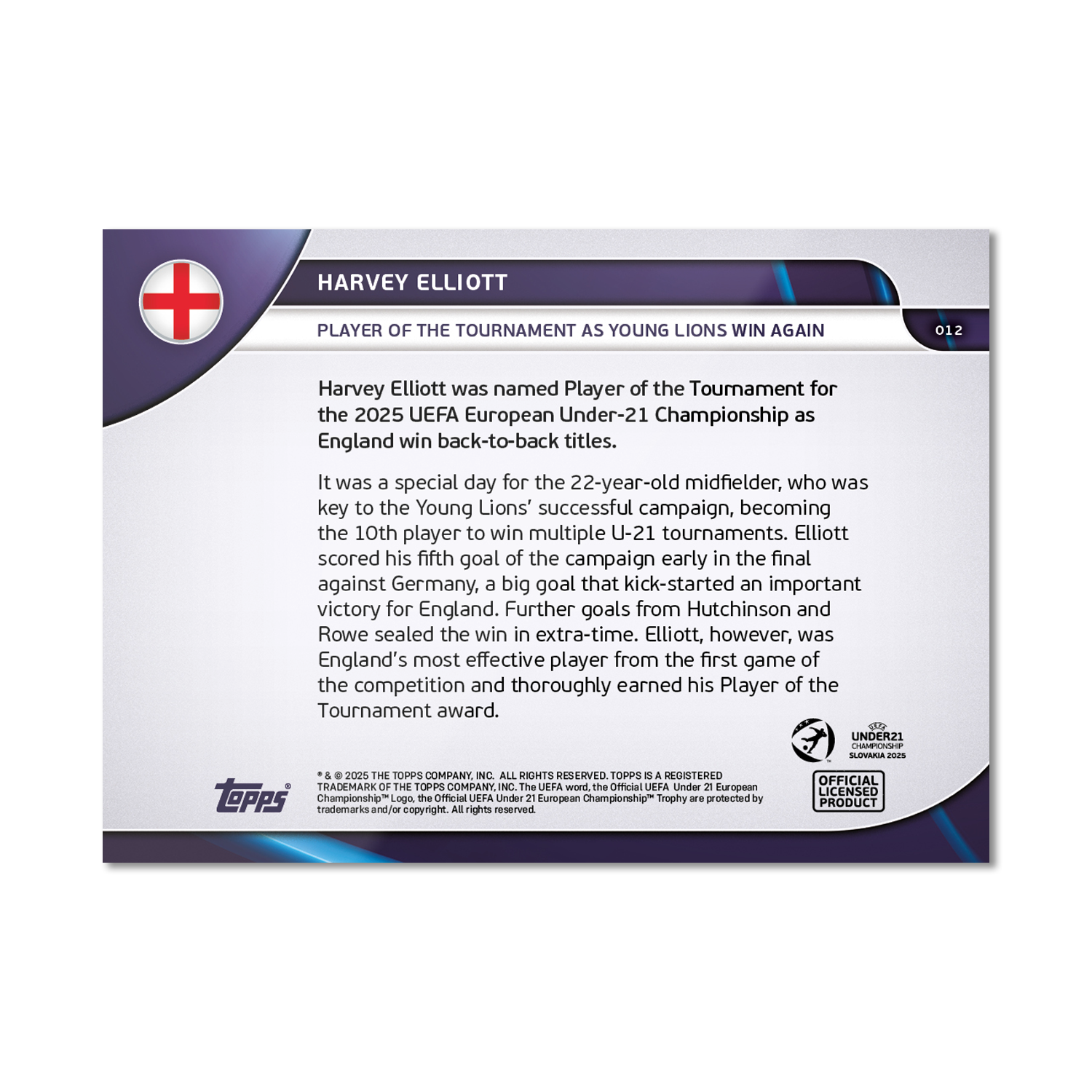 Harvey Elliott - 2025 UEFA Euro U-21 Topps NOW® - Card 12 - PR: 433
