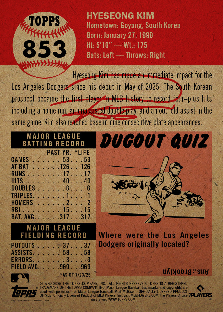 Hyeseong Kim - 2025 MLB Living Set® - Card 853 - PR: 2094