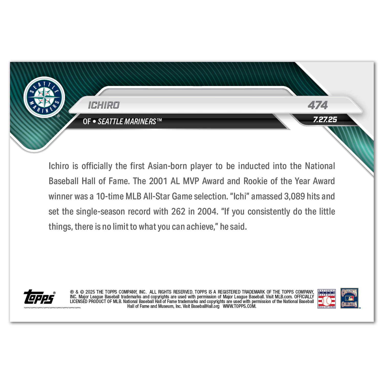 Ichiro - 2025 MLB Topps NOW® - Card 474 - LOOK FOR AUTOS - PR: 11993