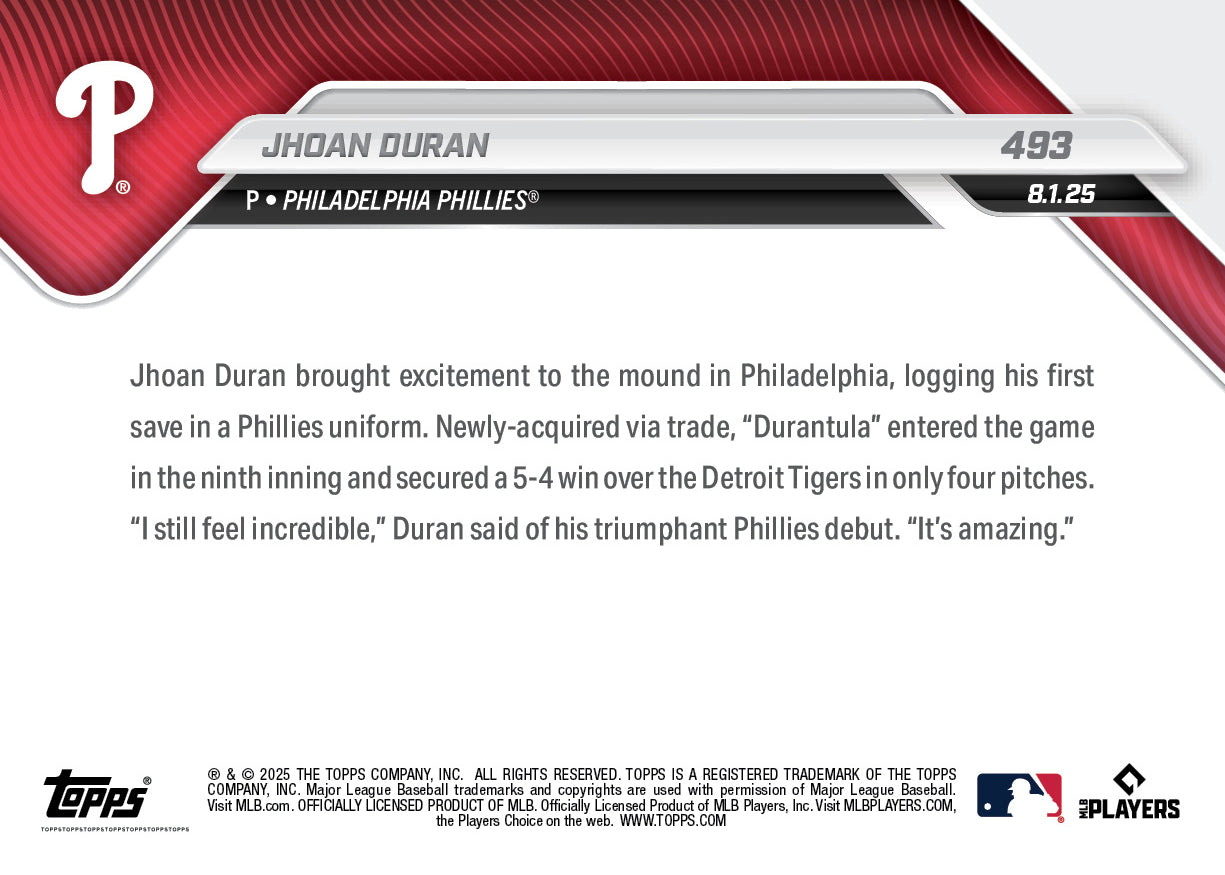 Jhoan Duran - 2025 MLB Topps NOW® - Card 493 - PR: 1295