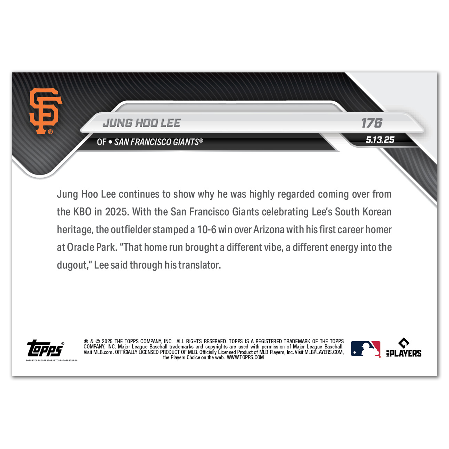 Jung Hoo Lee - 2025 MLB Topps NOW® - Card 176 - PR: 1313