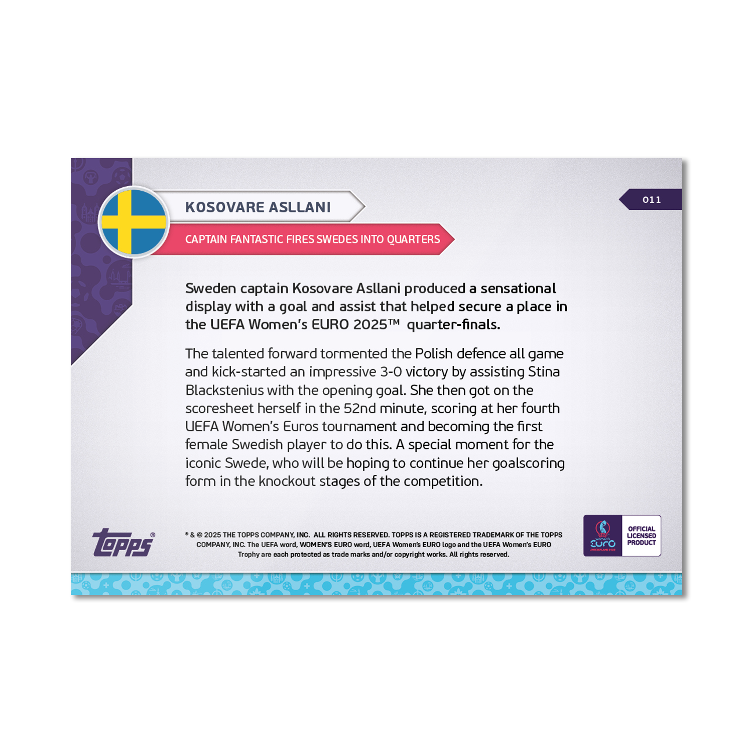 Kosovare Asllani - UEFA Women’s EURO 2025™ Topps NOW® - Card 11 - PR: 182