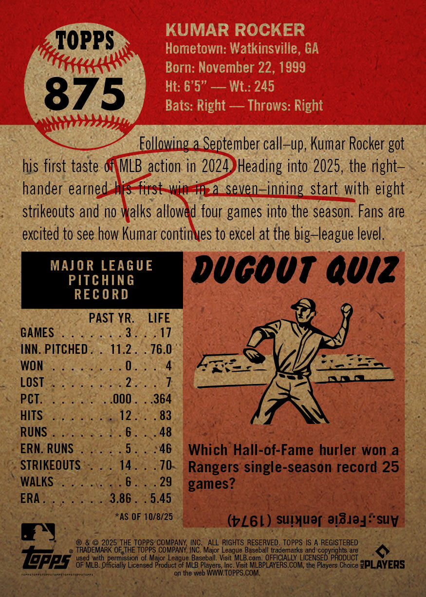 Kumar Rocker - 2025 MLB Living Set® - Card 875 - PR: 1142