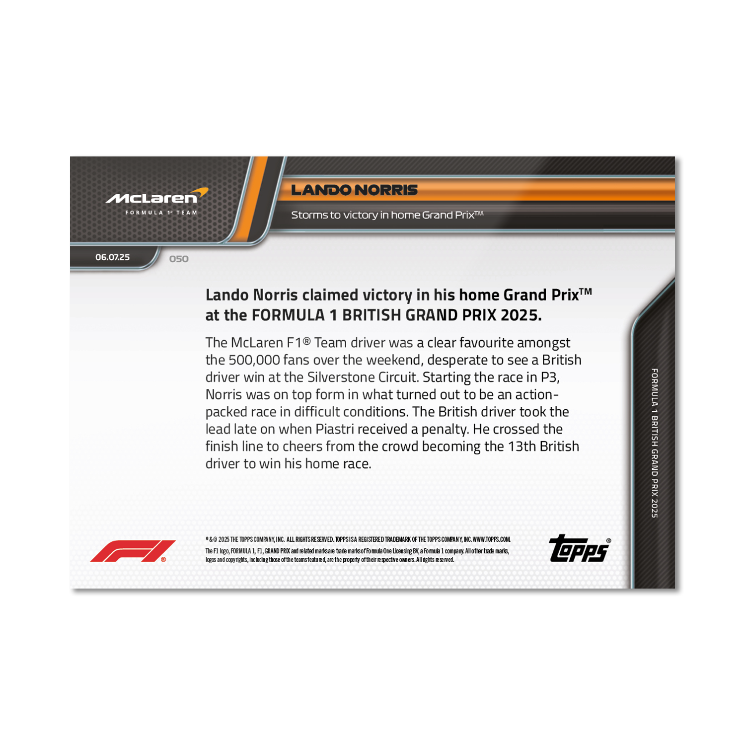 Lando Norris - 2025 Formula 1® Topps NOW® - Card 50 - PR: 4282