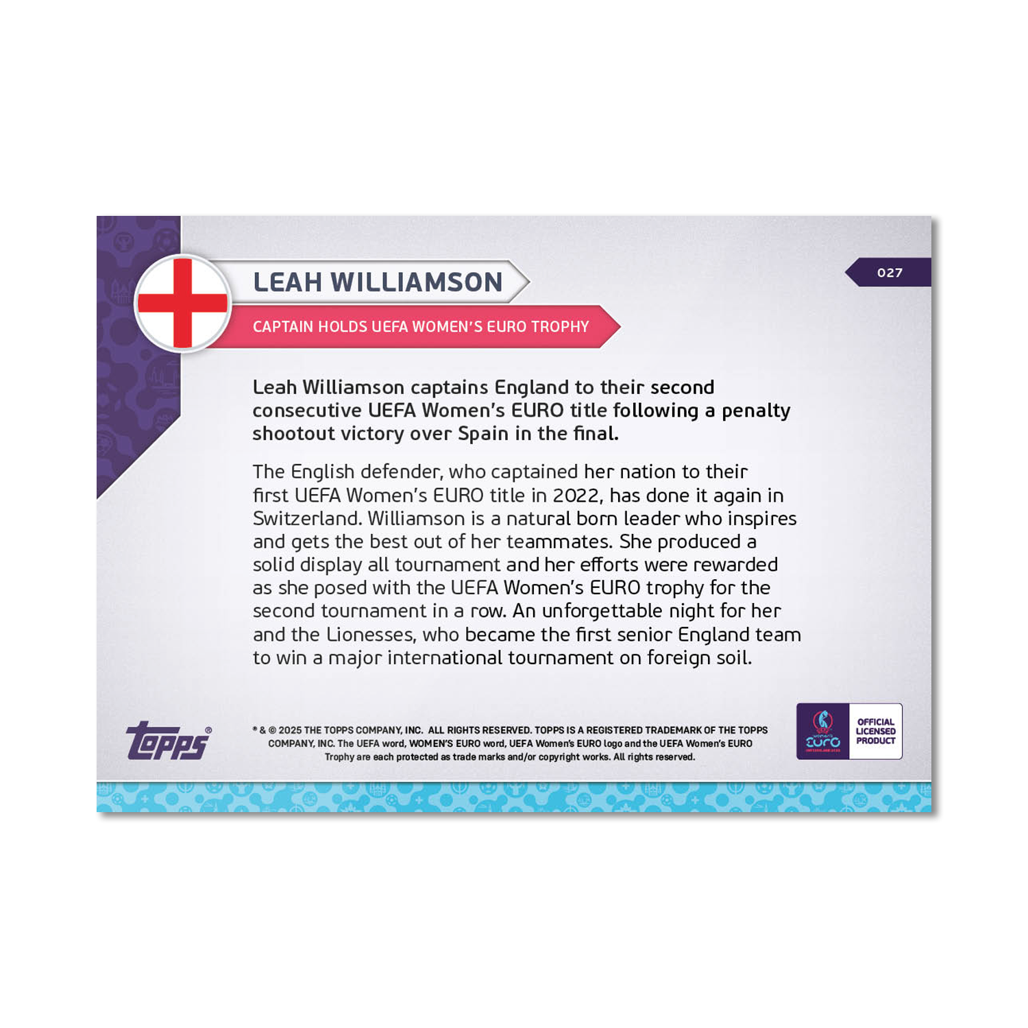 Leah Williamson - UEFA Women’s EURO 2025™ Topps NOW® - Card 27 - LOOK FOR AUTO - PR: 915