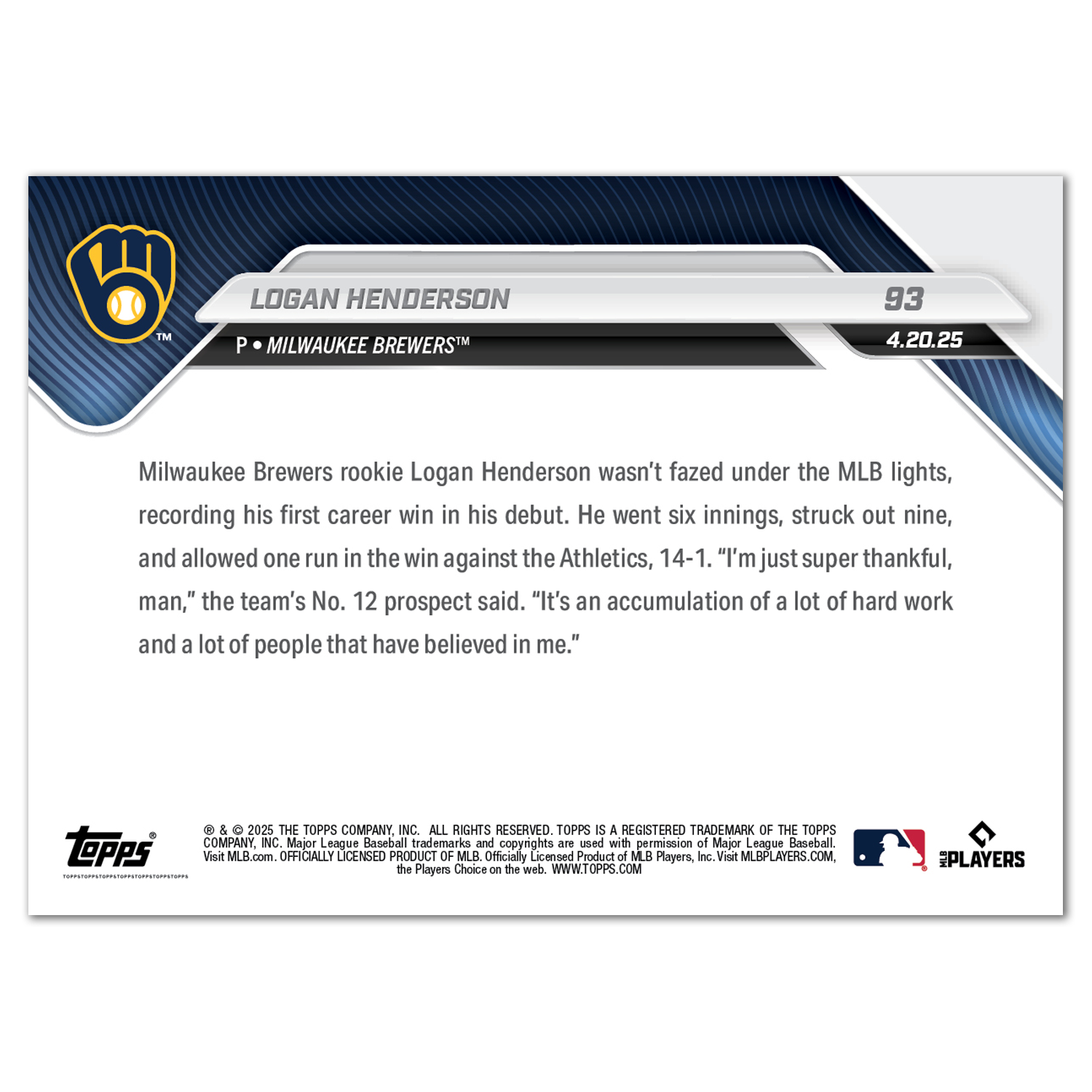 Logan Henderson - 2025 MLB Topps NOW® - Card 93 - PR: 763