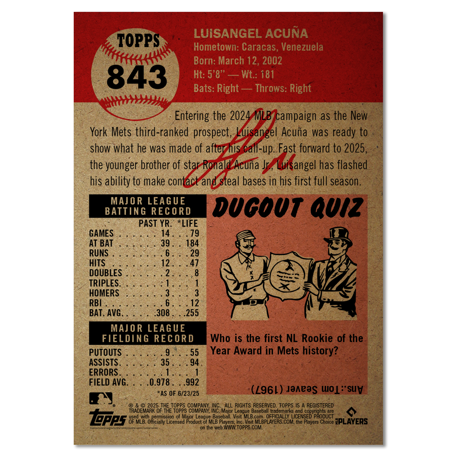 Luisangel Acuña - 2025 MLB® Living Set® - Card 843 - PR: 1609