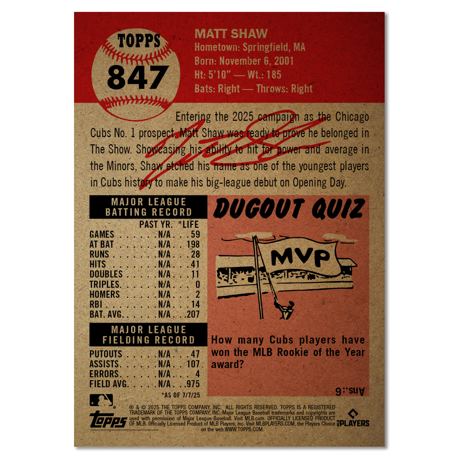 Matt Shaw - 2025 MLB Living Set®- Card 847 - PR: 1686