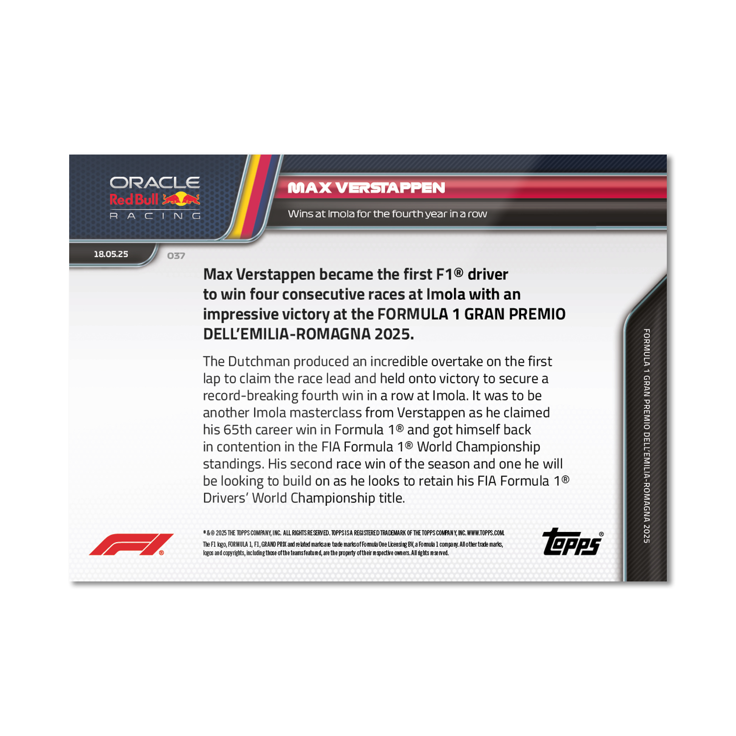 Max Verstappen - 2025 Formula 1® Topps NOW® - Card 37 - PR: 2389