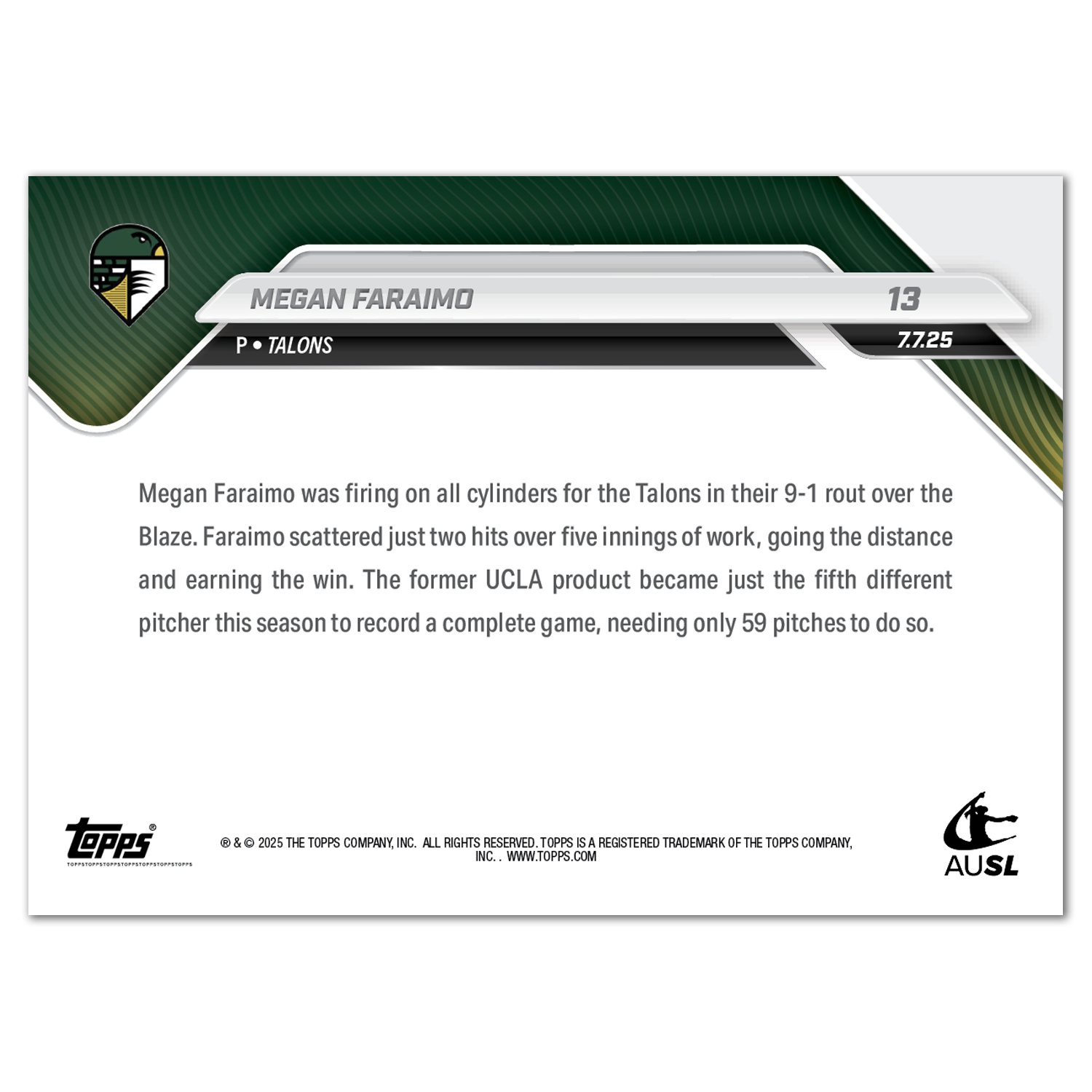 Megan Faraimo - 2025 AUSL Topps NOW® - Card 13 - PR: 733