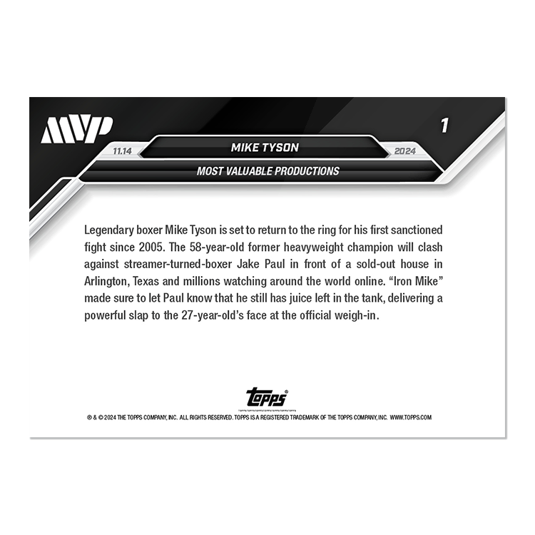 Mike Tyson - 2024 Boxing Topps NOW® Card 1 - PR: 4579