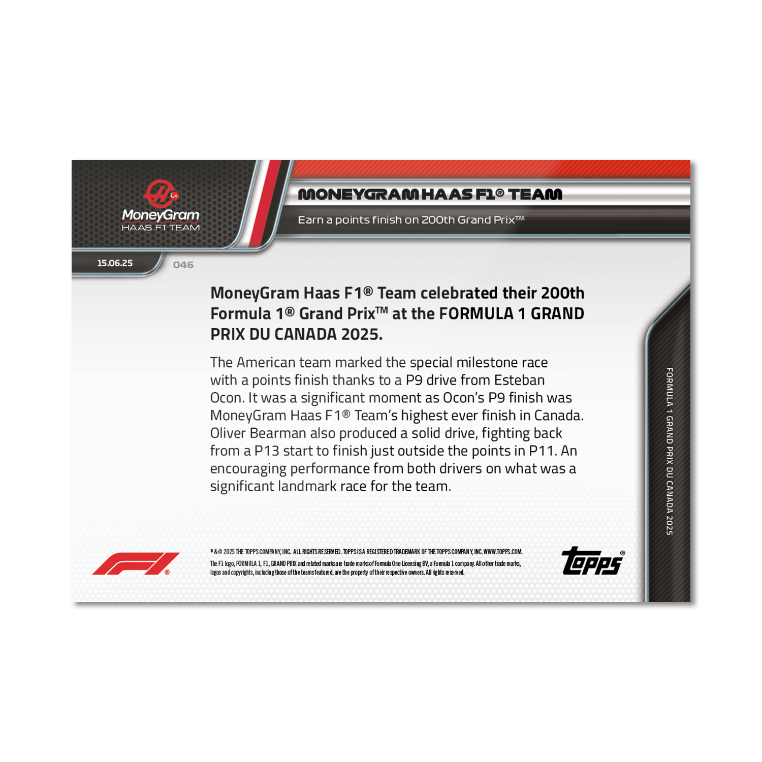 MoneyGram Haas F1® Team - 2025 Formula 1® Topps NOW® - Card 46 - PR: 729