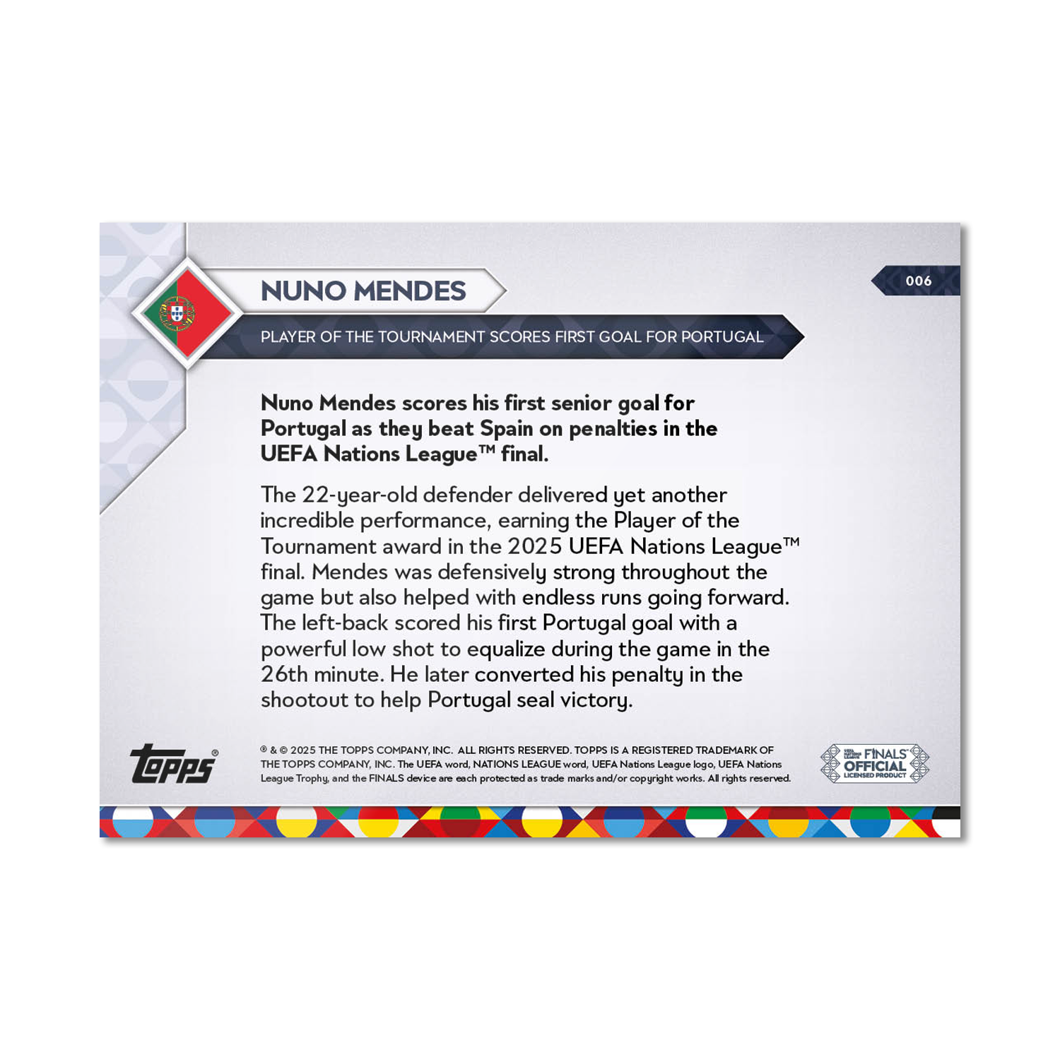 Nuno Mendes - 2025 UEFA Nations League Topps NOW® - Card 6 - PR: 421