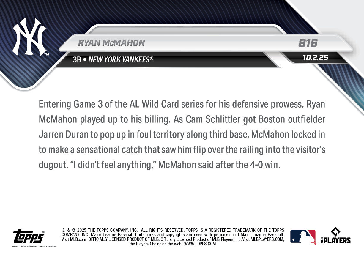 Ryan McMahon - 2025 MLB Topps NOW® - Card 816 - PR: 1878