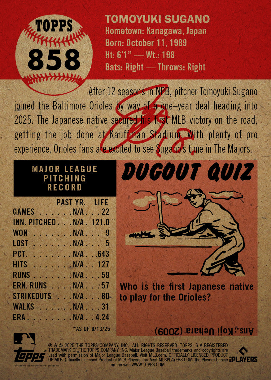Tomoyuki Sugano - 2025 MLB Living Set® - Card 858 - PRL 1384