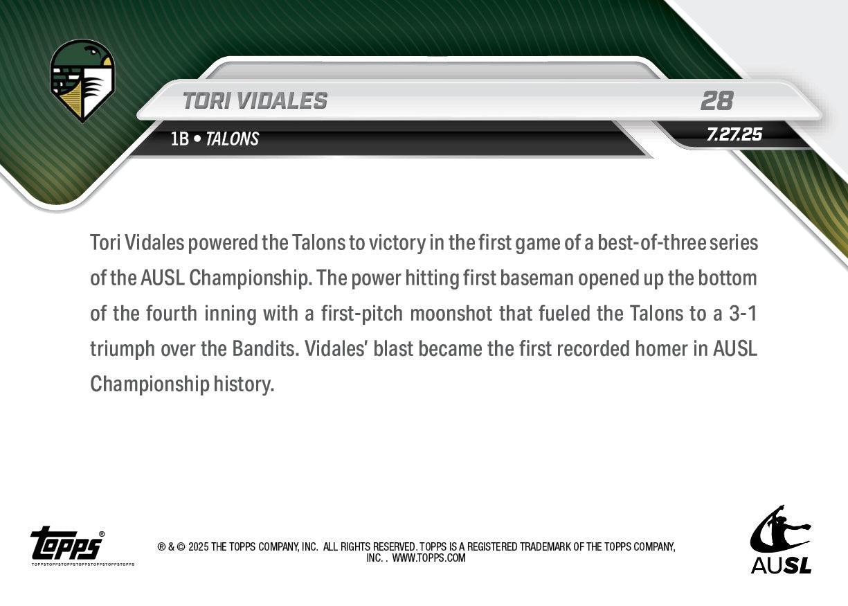 Tori Vidales - 2025 AUSL Topps NOW® - Card 28 - LOOK FOR AUTOS - PR: 775