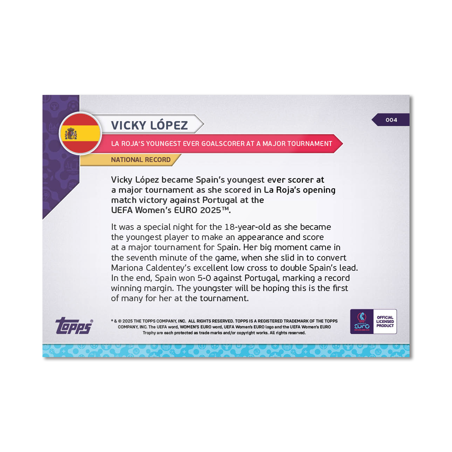 Vicky López - UEFA Women’s EURO 2025™ Topps NOW® - Card 4 - PR: 301