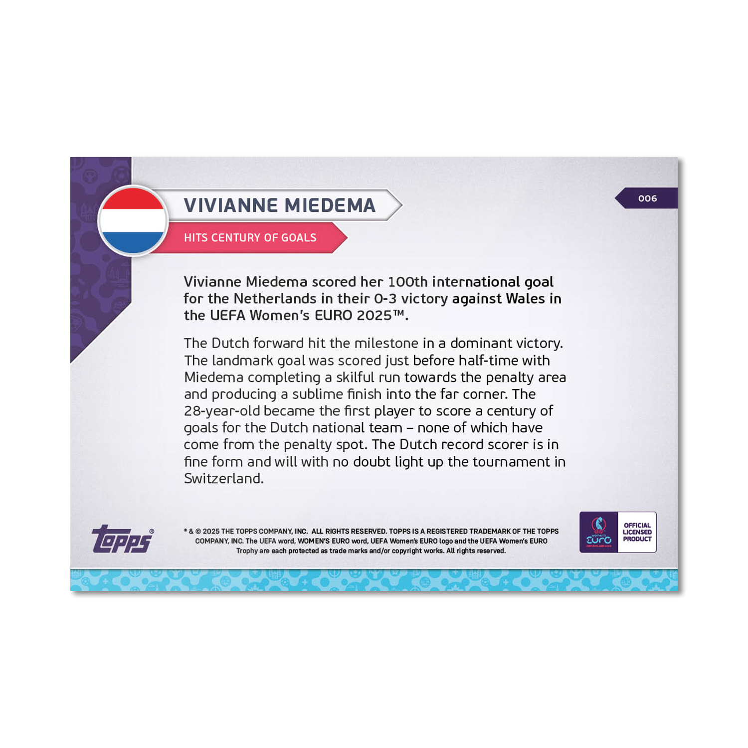 Vivianne Miedema - UEFA Women’s EURO 2025™ Topps NOW® - Card 6 - PR: 444