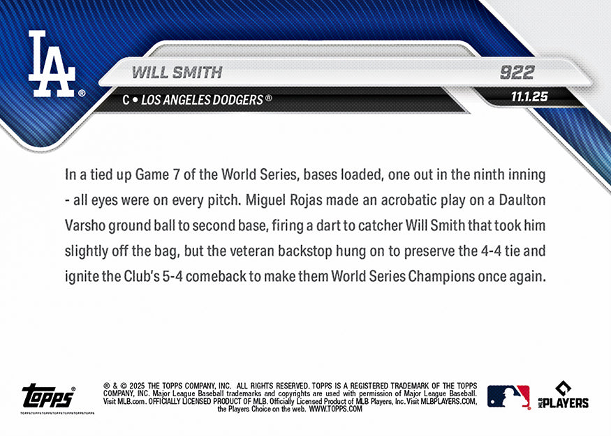 Will Smith - 2025 MLB Topps NOW® - Card 922 - PR: 6851